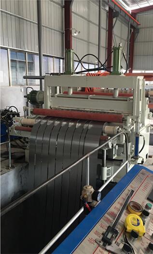 本設備的工作流程:本設備是將鋼板(各種金屬材料卷)通過高速精密縱剪加工成需要寬度的專用剪切設備。本設備的主要工作主機由開卷機、精密圓盤式刀座、張力產生站、收卷機等四個主要機構構成,中間輔以收紙、運料、夾送、板頭剪床、緩沖、引導、覆膜、收卷廢邊、分卷剪床、出料等裝置。