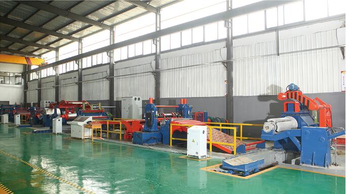 本設(shè)備的工作流程:本設(shè)備是將鋼板(各種金屬材料卷)通過高速精密縱剪加工成需要寬度的專用剪切設(shè)備。本設(shè)備的主要工作主機(jī)由開卷機(jī)、精密圓盤式刀座、張力產(chǎn)生站、收卷機(jī)等四個(gè)主要機(jī)構(gòu)構(gòu)成,中間輔以收紙、運(yùn)料、夾送、板頭剪床、緩沖、引導(dǎo)、覆膜、收卷廢邊、分卷剪床、出料等裝置。